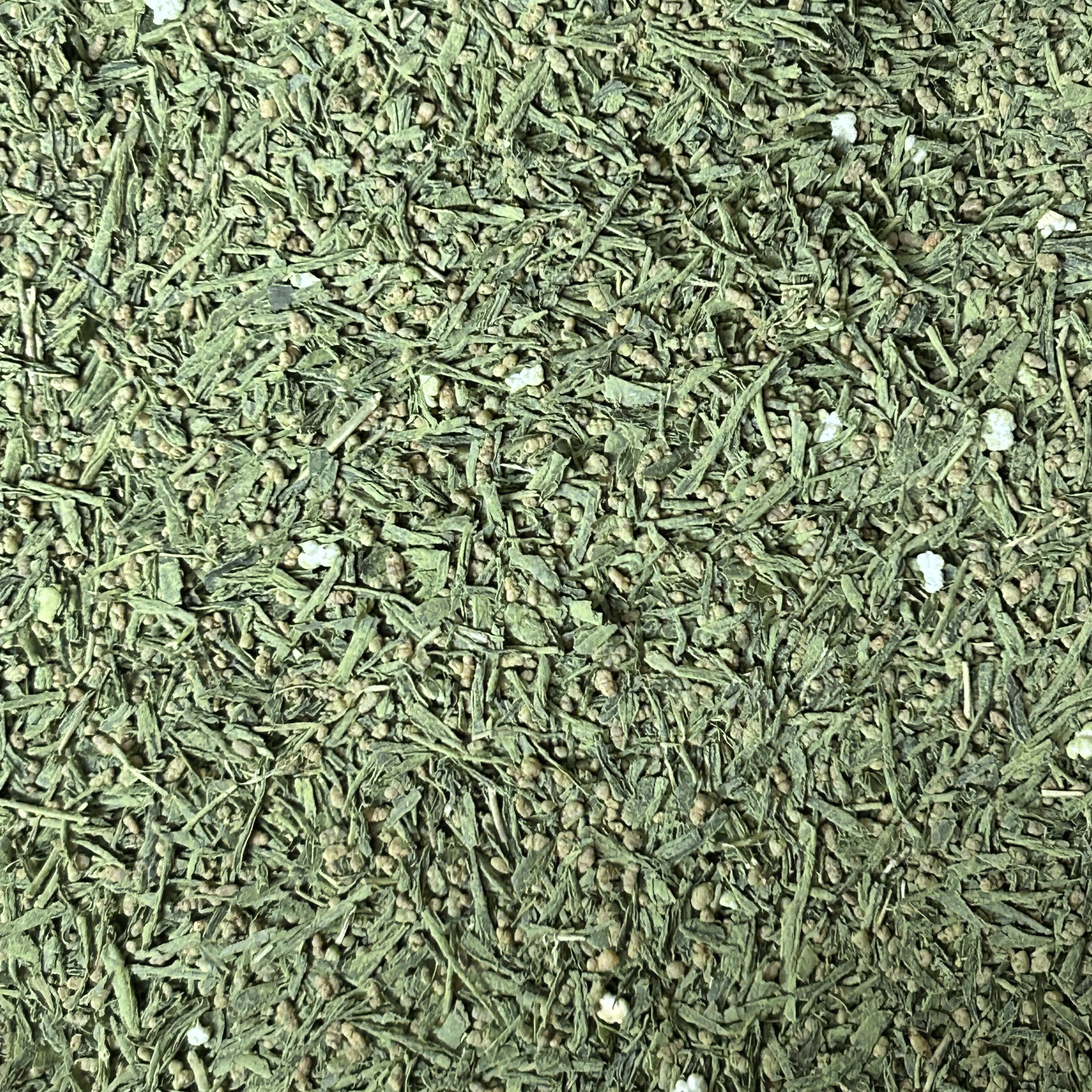 1番茶収穫直後の、遅れ芽や大きくなった葉と、国産の煎り米を丁寧にブレンドし、